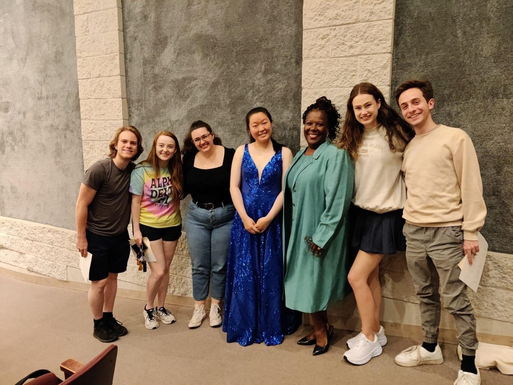 Back stage before Meridian Symphony concert with Molina, Harrison, & GregoireDressing Room selfieReese, Kaylee, Gabi, Jenny, Me, & Emma Claire. It’s always nice to have students support youJianlng (Jenny) Ling, DMA Chamber RecitalLawrence, Cornelius, Kelly & me arrive in Edinburgh for Festival Fringe